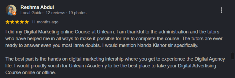 Currently, I’m working as a Digital Marketing Trainer at Unlearn Academy, Unlaern Academy is one of the Finest Digital Marketing Academies in Trivandrum, Unleran Academy allowed me to learn and experiment with my skills, I also Conducted Digital Marketing Seminar in various collages, Unlearn is under Adsomia, An advertising Agency.